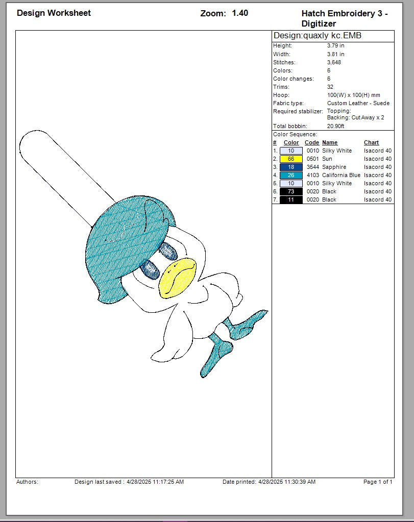 stitches; kc 3,648